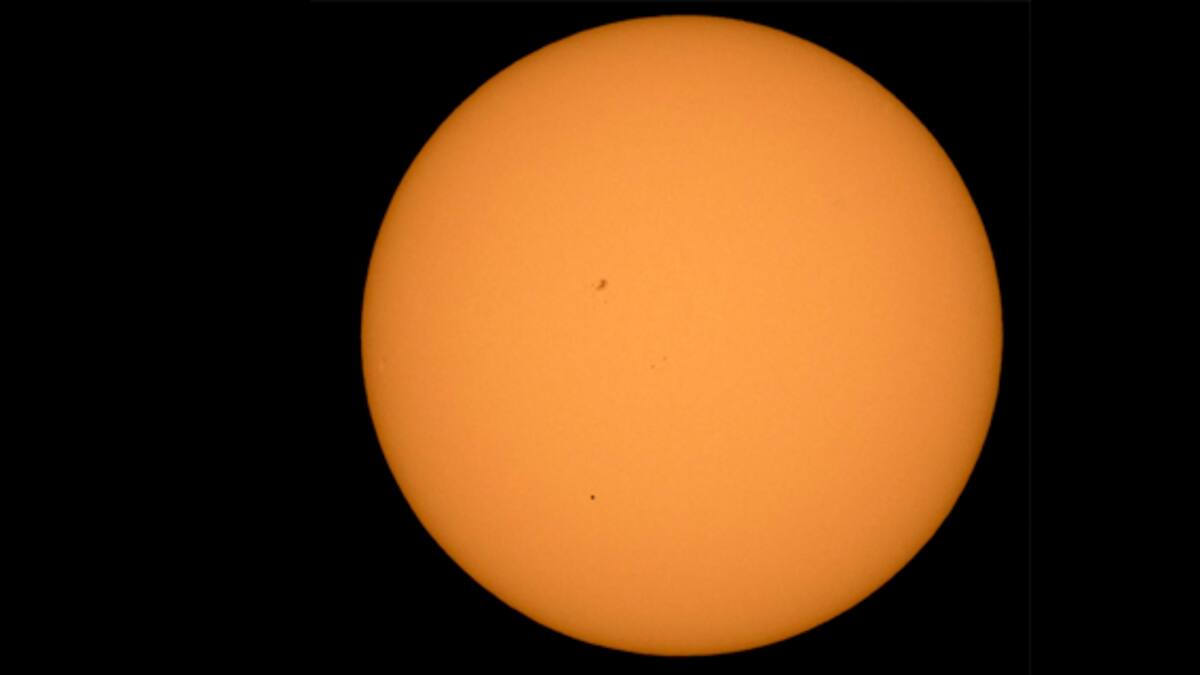 Durante siete horas y media, Mercurio fue visible hoy desde la Tierra como un pequeño punto negro cruzando frente al Sol, un espectáculo grabado por primera vez por el Observatorio de Dinámicas Solares de la NASA.