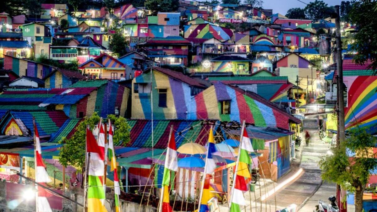 Una aldea indonesia atrae a hordas de turistas y de curiosos desde que pintó de todos los colores sus casas, ganándose el apodo de ‘aldea arco iris’.