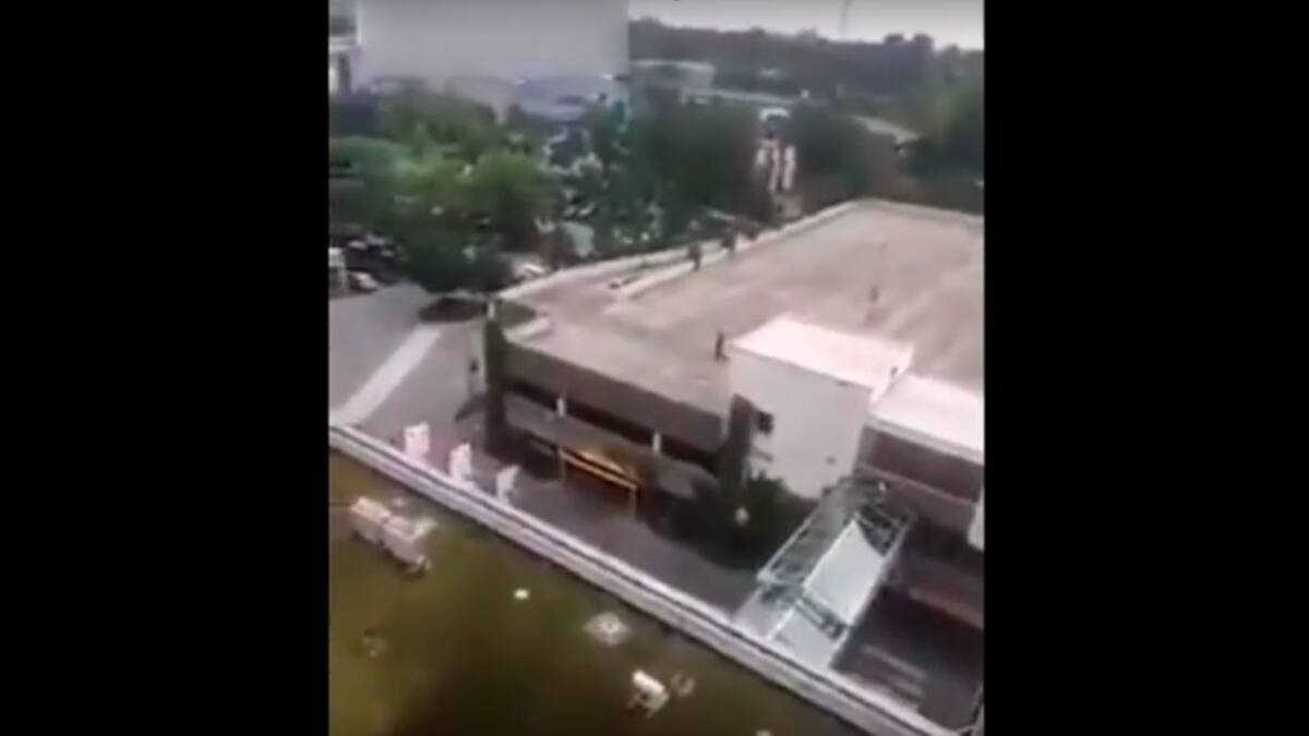 El que hace la grabación se oculta detrás de un muro y el atacante dispara