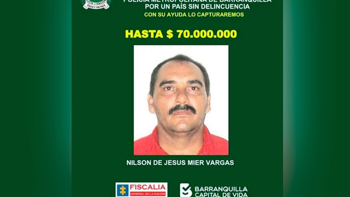 Hasta 70 millones de pesos están ofreciendo la Policía Metropolitana de Barranquilla, la Fiscalía y la Alcaldía Distrital por información exacta que ayude a dar con el paradero Nilson Mier Vargas, quien es buscado por su presunta vinculación a los atentados terroristas cometidos el pasado 27 y 28 de enero, en San José y Soledad 2000.