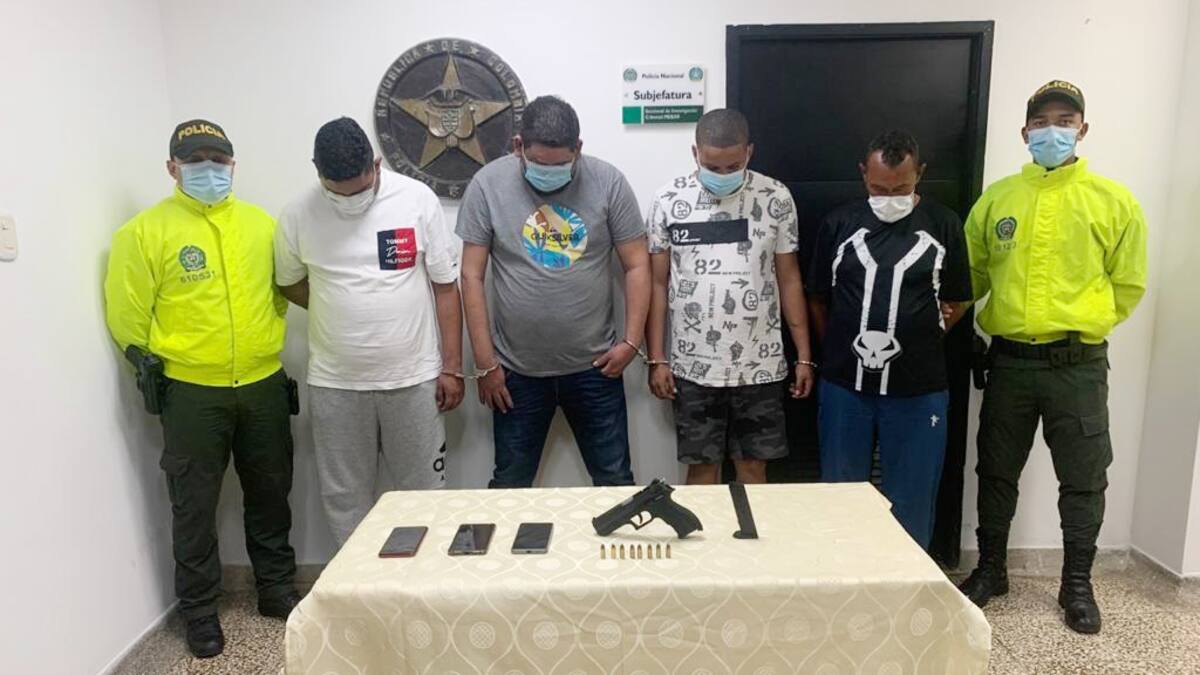 Los capturados son Diego Armando Niebles Bolívar, alias Dieguito; Hernán Darío Gómez García, Alfonso Enrique Montenegro Moreno y Hugo César González Rodríguez, quienes tenían orden de captura por el delito de hurto calificado agravado en concurso homogéneo sucesivo, en concurso heterogéneo con concierto para delinquir.