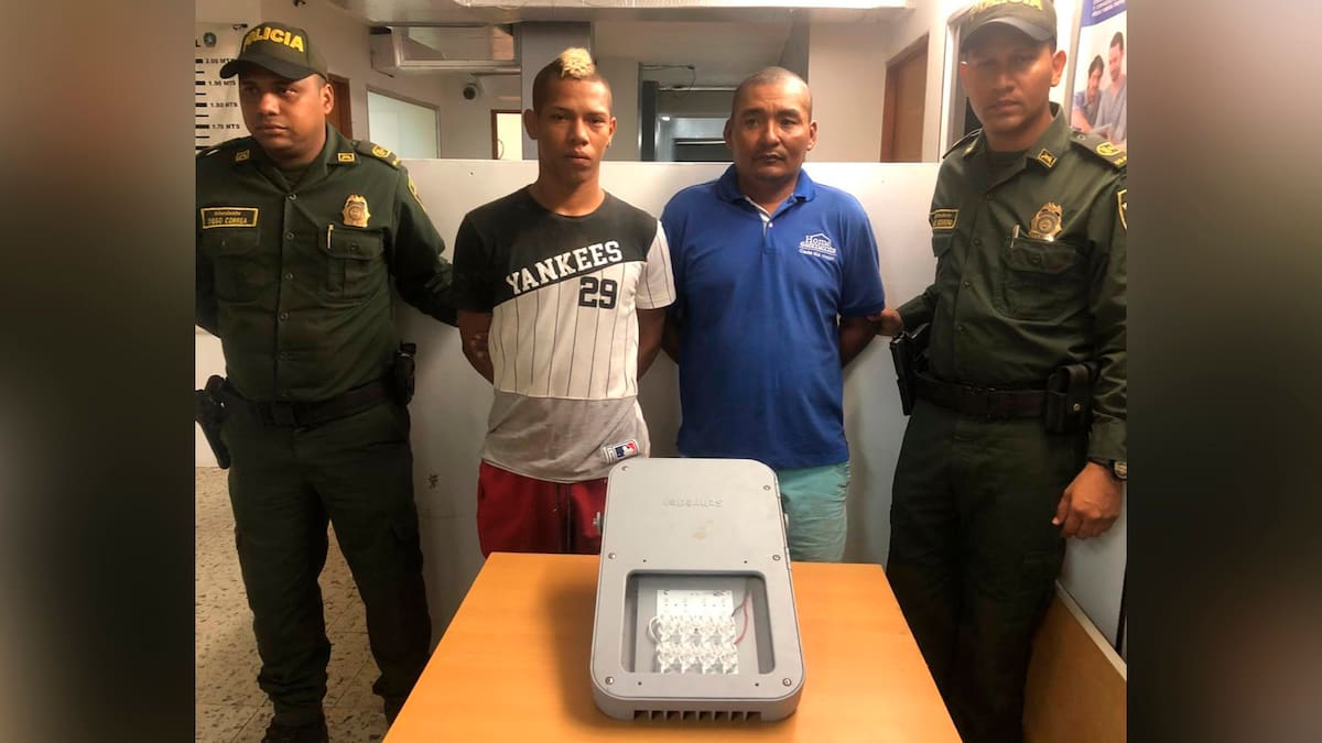 La Policía Metropolitana de Barranquilla informó este jueves sobre la captura de dos hombres que supuestamente tenían en su poder una de las lámparas robadas del nuevo puente Pumarejo.