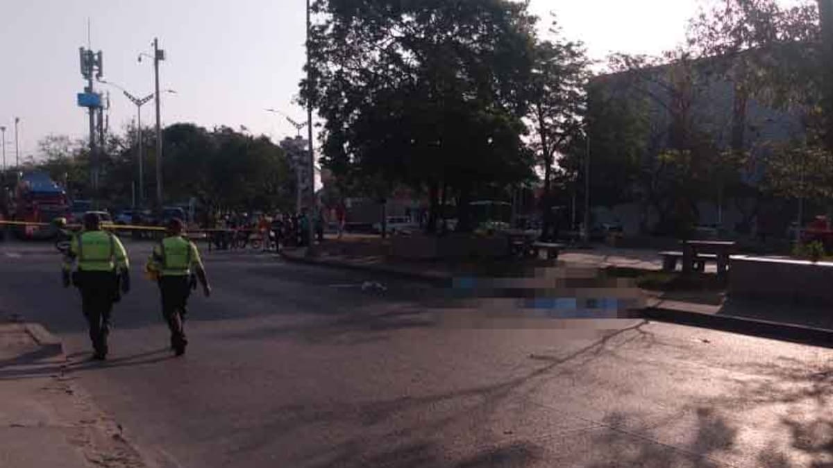 Debajo de una sábana azul quedó el cuerpo sin vida de Yeison Santiago Navarro Rodelo, de 29 años, quien murió durante un accidente de tránsito con un tracto-camión a la altura del Bulevar del barrio Simón Bolívar.