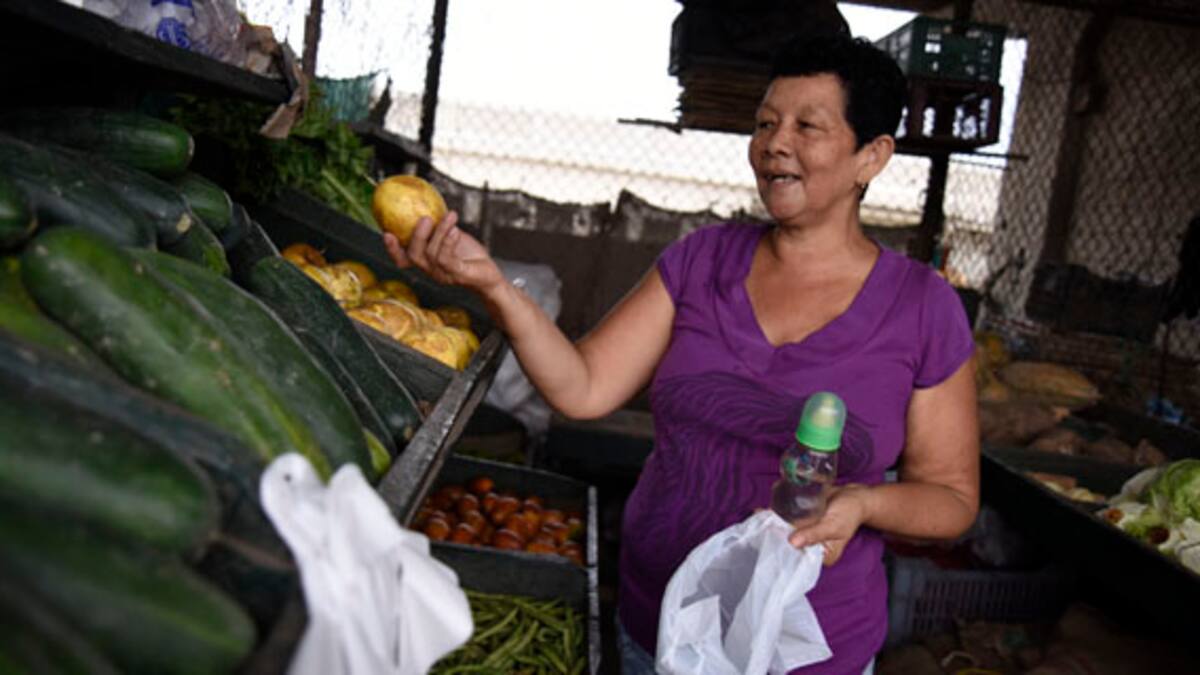 En la central ubicada en Soledad, Marlene Flórez busca escoger los mejores alimentos para su compra ‘extra’ del mes. 'Rendimiento y ahorro' son los factores que más tiene en cuenta a la hora de mercar; una 'tarea muy dura', dice.