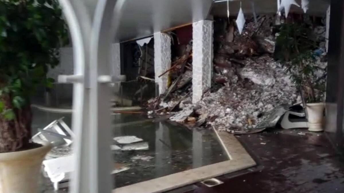 Las imágenes grabadas desde el helicóptero por la Policía de esta nación muestran que este hotel de cuatro estrellas, un edificio de tres pisos y con balneario, desapareció completamente y sólo el lado del establecimiento donde se encuentra la piscina está al descubierto, por donde han podido entrar los socorristas.
