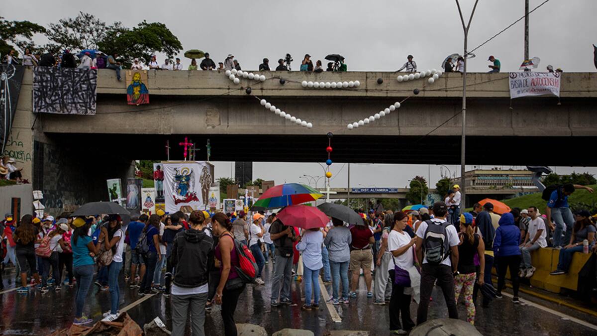 Ayer, miles de opositores bloquearon importantes vías de Venezuela, con graves hechos de violencia que dejan una docena de heridos, al entrar este lunes en su séptima semana de protestas para exigir la salida de Maduro.