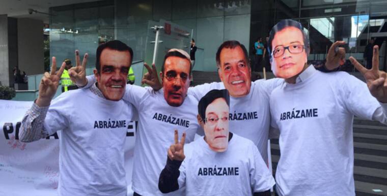 Por obra y gracia de unas máscaras, consiguieron que personajes renuentes abrazaran a sus detractores, se arrimaran, como diría Serpa. Las caretas correspondían a personajes de la talla de Óscar Iván Zuluaga, Francisco Santos, Alejandro Ordoñez y Gustavo Petro.