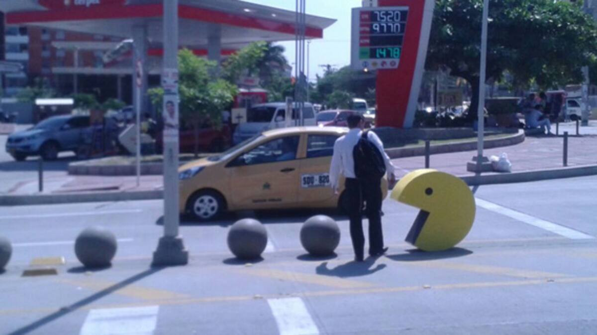 Pacman, aquel juego ochentero que a tantos ha divertido, cobró vida y aterrizó en Barranquilla. O al menos así lo deja ver una réplica del muñeco instalada en la carrera 54, popularmente conocida como 'Calle de las butifarras', por unas esferas de concreto instaladas en el separador.