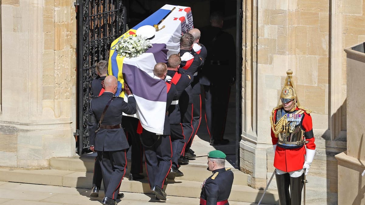 Ese automóvil fue flanqueado por representantes de diferentes regimientos militares y seguido, también, por sus cuatro hijos: Carlos, Ana, Andrés y Eduardo. Los restos mortales del duque de Edimburgo serán inicialmente depositados en el panteón real bajo la capilla de San Jorge.