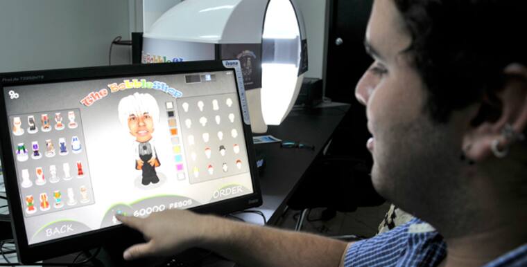 Después de escanear tu rostro en The Bobble Shop puedes imprimirlo en un figurín prediseñado.