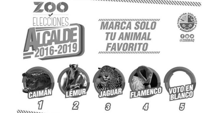 En el Zoológico de Barranquilla se librarán hoy los comicios más divertidos de la jornada cívica. El caimán, el lémur de cola anillada, el jaguar y el flamenco se disputan las Zoo elecciones, en la que los votos de los niños elegirán quién será el alcalde, entre cuatro candidatos, en un ejercicio de democracia lúdica.