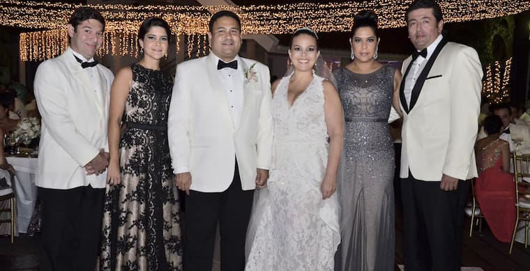 Los recién casados con sus padres, Luis Miguel Lemaitre, Íngrid Dahl, Arminda Gaviria y Eduardo Estrada.