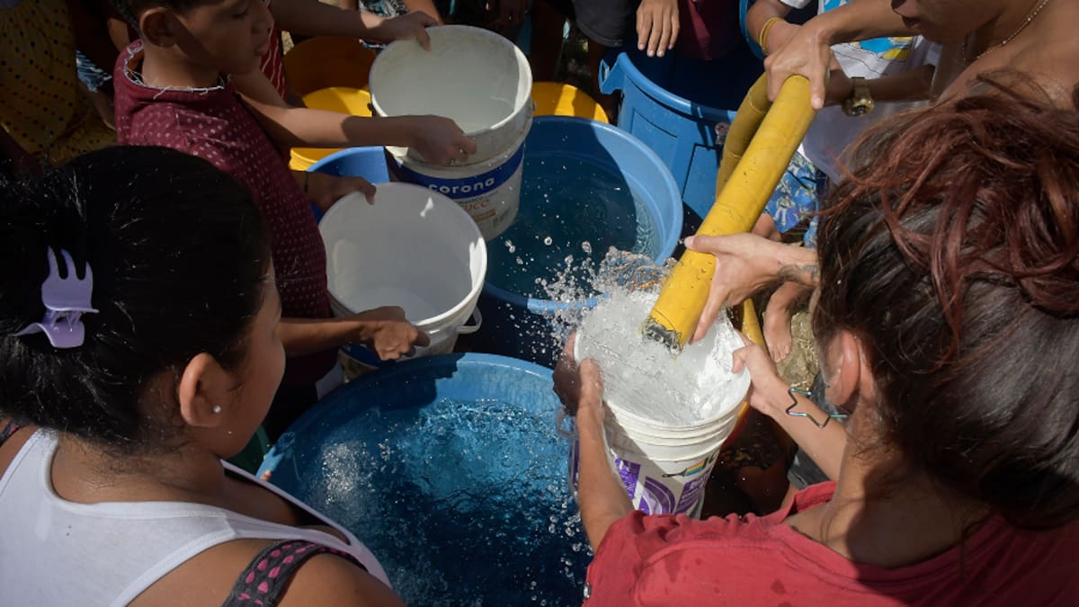 Con baldes, tanques y demás recipientes, los habitantes del sector intentaban surtirse del agua de un carrotanque que se encontraba en la zona.