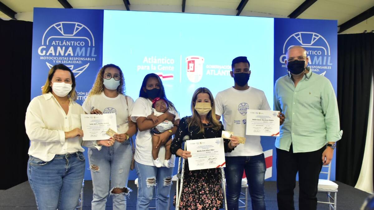 Con el programa 'Atlántico Gana Mil', la Gobernación a través del Tránsito del Atlántico, realizó unos cursos de conducción segura que este jueves culminaron mediante la graduación de 1000 motociclistas que hicieron parte de la estrategia, quienes además de la formación, recibieron una licencia de conducción para transitar legalmente en las vías.