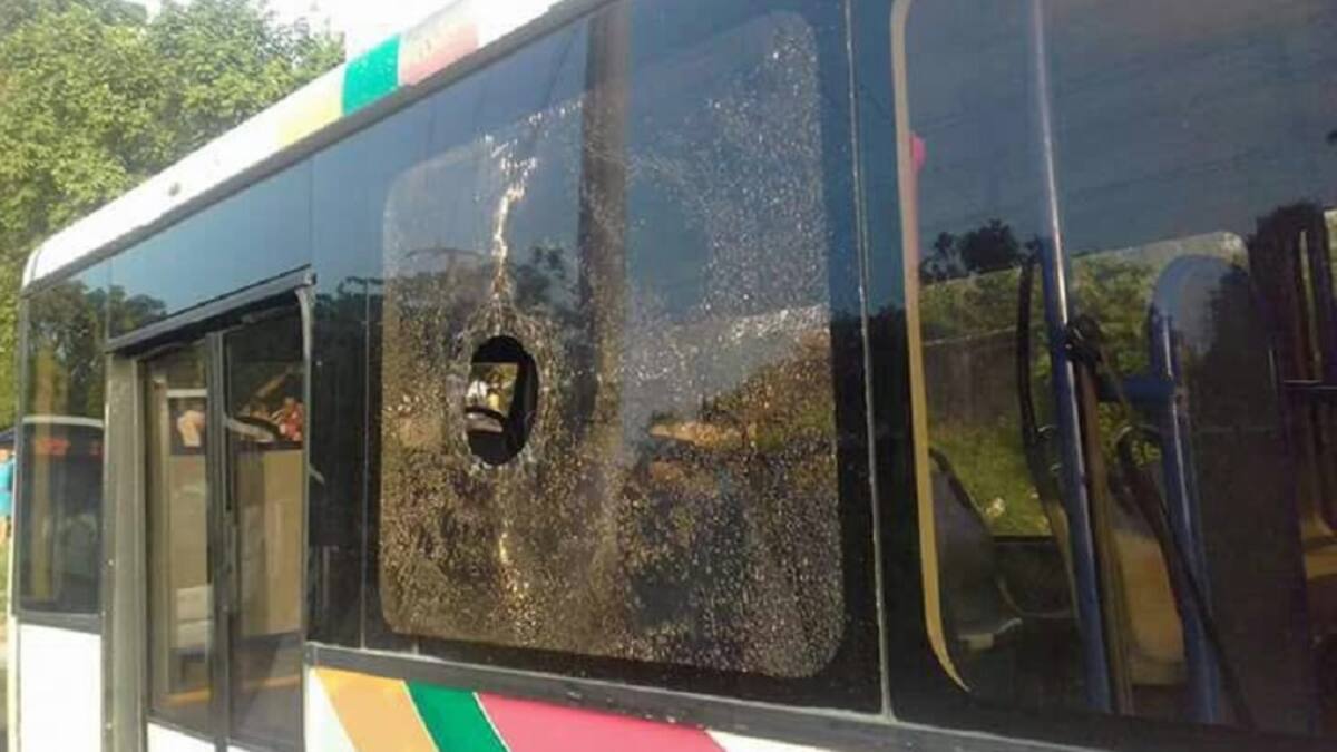 En las horas de la tarde a la altura de la Carrera siete con Calle. 65, cuando el bus TM12015 de ruta A3-3 Manuela Beltrán fue impactado en los vidrios laterales derecho e izquierdo.