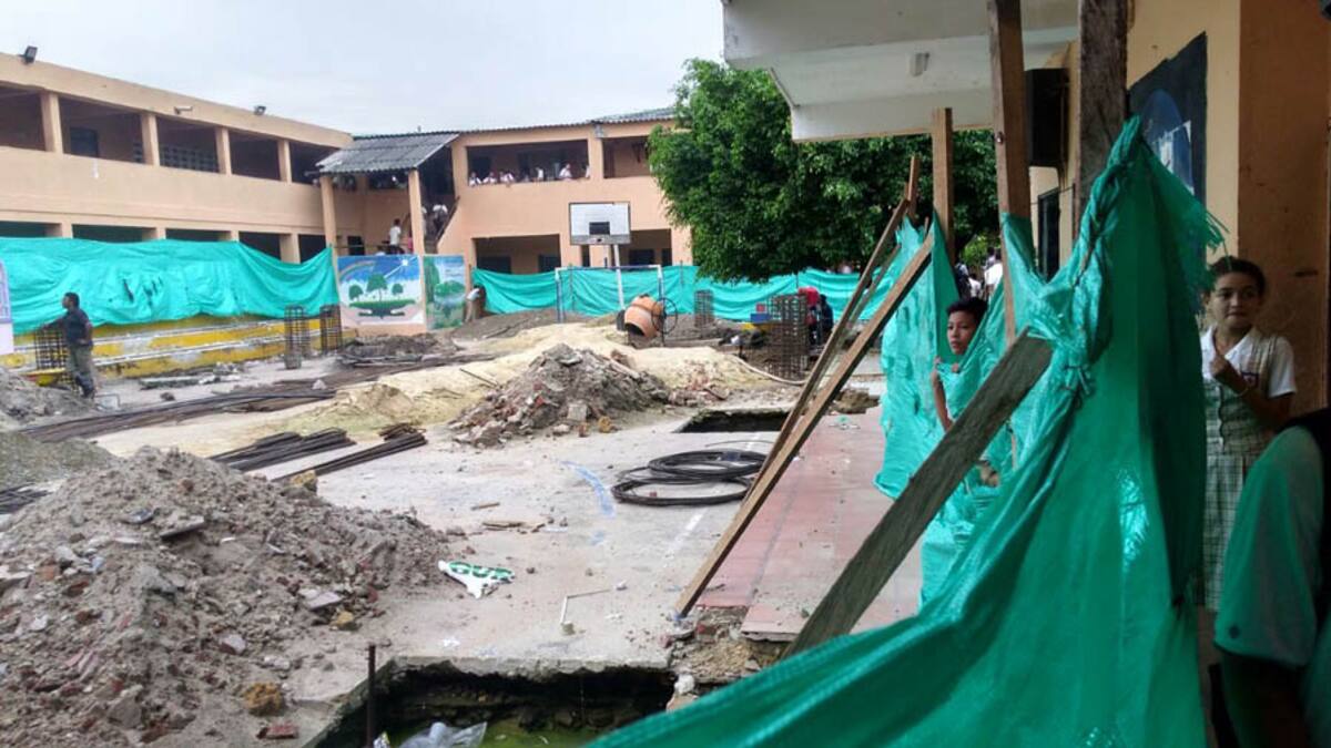 'En las obras se presentaron inconvenientes por las lluvias, hicieron unos huecos que se llenaron de agua, el terreno cedió y ha socavado algunas pisos, por lo que algunas escaleras, pasillos y aulas de clase quedaron sin cimentos', dijeron en su mensaje enviado a través del servicio de Wasapea.