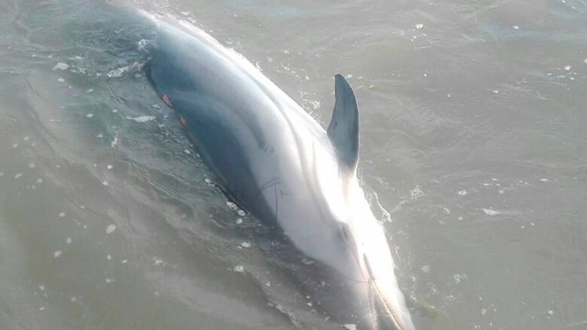 De igual forma, señaló que, al parecer, el delfín está herido en su lomo y tiene varios rasguños. 'Lleva dos horas dando vueltas y vueltas en círculo pero no ha podido entrar mar adentro', señaló Javier Cifuentes.
