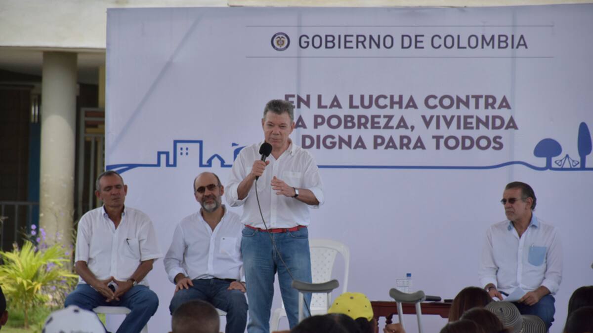 El presidente Juan Manuel Santos realizó ayer el sorteo de 368 viviendas en los municipios de Santa Lucía, Campo de la Cruz y Polonuevo. El mandatario estuvo acompañado por el gobernador del Atlántico, Eduardo Verano de la Rosa, y el ministro de Vivienda, Ciudad y Territorio, Camilo Sánchez.