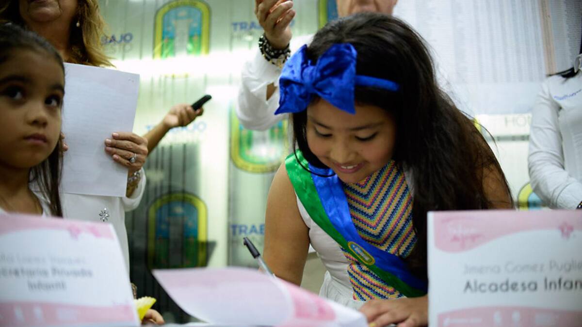 Hay que resaltar que por primera vez se posesionó una niña como alcaldesa infantil en el Municipio. Se trata de Jimena Gómez Pugliese, de ocho años, quien cursa tercer grado de primaria en el Colegio Colón.