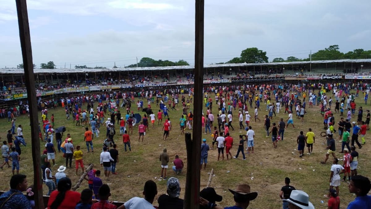 El ruedo se encontraba lleno de decenas de hombres, entre banderilleros, manteros y enlazadores. El toro corría hacia un lado del ruedo y la muchedumbre lo perseguía, esto como parte del acto para provocar que el público se animara a lanzar propinas y apostarle a la persona que lograra llamar la atención del toro y que salieran ilesas de la maniobra.