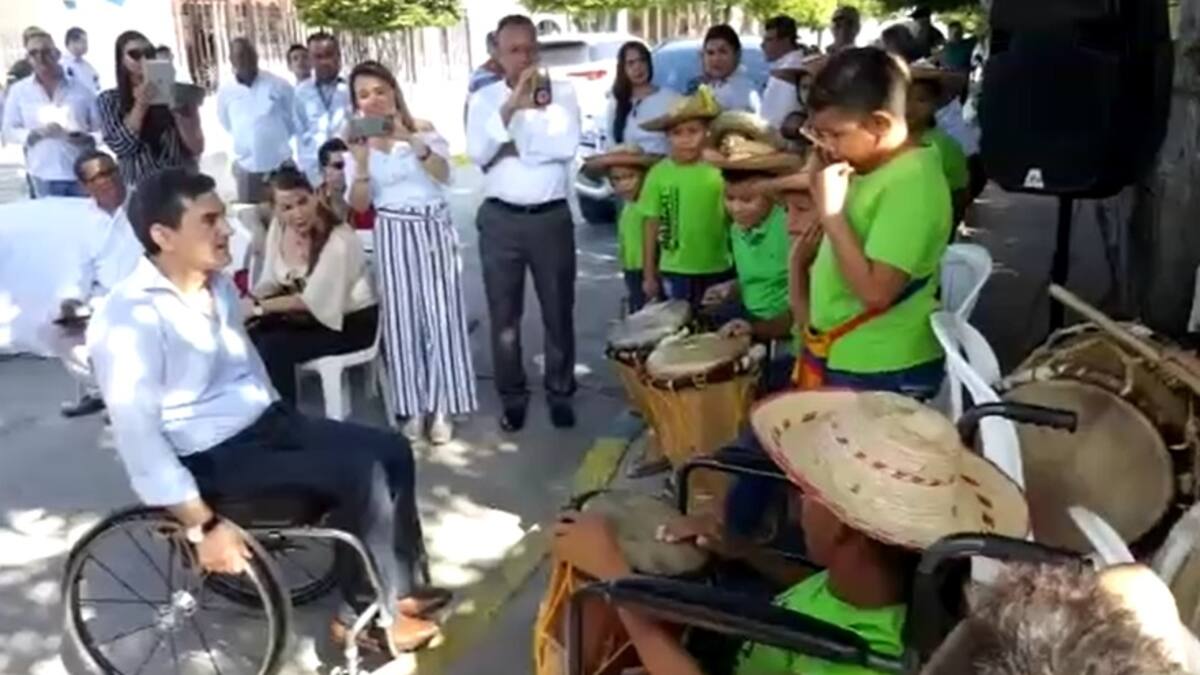 Músicos de Malambo con movilidad reducida, dificultades auditivas y visuales recibiói este miércoles en el nuevo centro de rehabilitación para personas en situación de discapacidad al alto consejero , pero con talento para el canto y el manejo de instrumentos folclóricos, características que resaltó el Alto Consejero Presidencial Jairo Clopatofsky quien inauguró allí el Centro de Participación Integral y Rehabilitación.