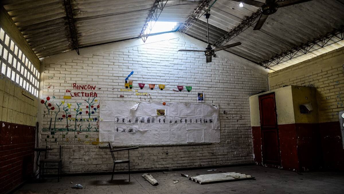 Las tejas del techo de algunos salones se han caído, debido a la falta de mantenimiento y a las fuertes brisas, y por eso, los estudiantes han tenido que recibir clases en el comedor de la institución, donde no cuentan con el ambiente adecuado para estudiar.