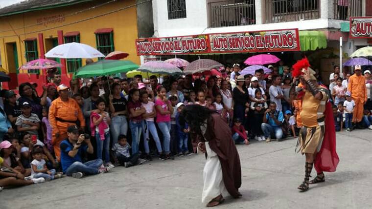 Este Viernes Santos se cumplió en Usiacurí, el viacrucis viviente como parte de la oferta turística religiosa que organizó el municipio para propios y turistas para la Semana Mayor. La muestra fue apreciada por decenas de personas que se apostaron a los lados de la calles del municipio pasar observar la recreación de las últimas horas de Jesucristo en su camino al calvario para su crucifixión.