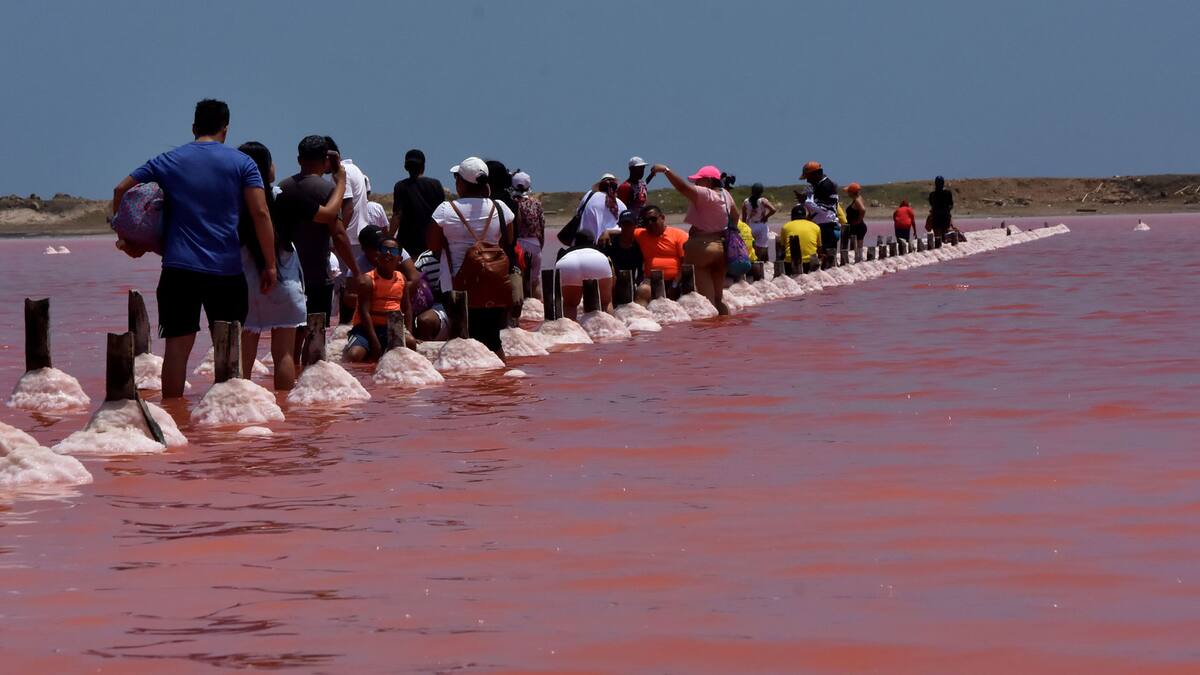 'Jamás me imaginé ver tanta gente de todas partes, para los que vivimos aquí no es una novedad ver el tono de la salinas', dijo Sandra Arévalo, una galerazambuna que aprovechó el efecto de las salinas, para vender refrescos y lavar los pies a quienes salían de las piscinas de mar, creadas para extraer el mineral.