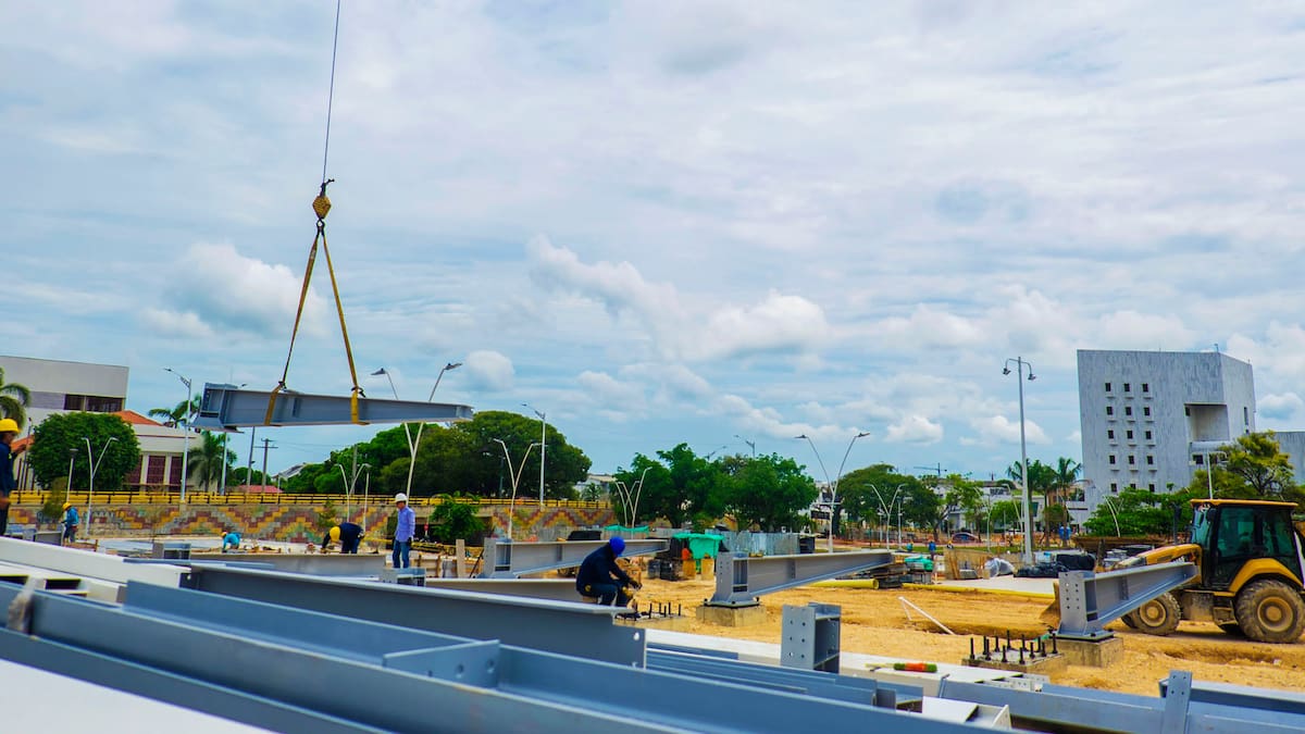 Como primer paso, se instalaron las vigas principales del área de la terraza del cubo, sobre estas se levantarán las columnas para sostener el armazón metálico, ya elaborado, y este sostendrá las piezas de vidrio.