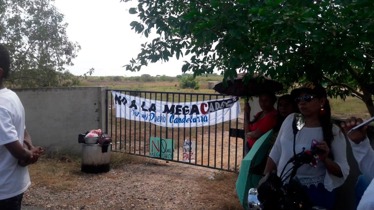 Con un plantón pacífico, los habitantes del municipio Candelaria, en el sur del Atlántico, rechazan este lunes la visita de la ministra de Justicia, Margarita Cabello, al predio en el que se construirá la megacárcel.