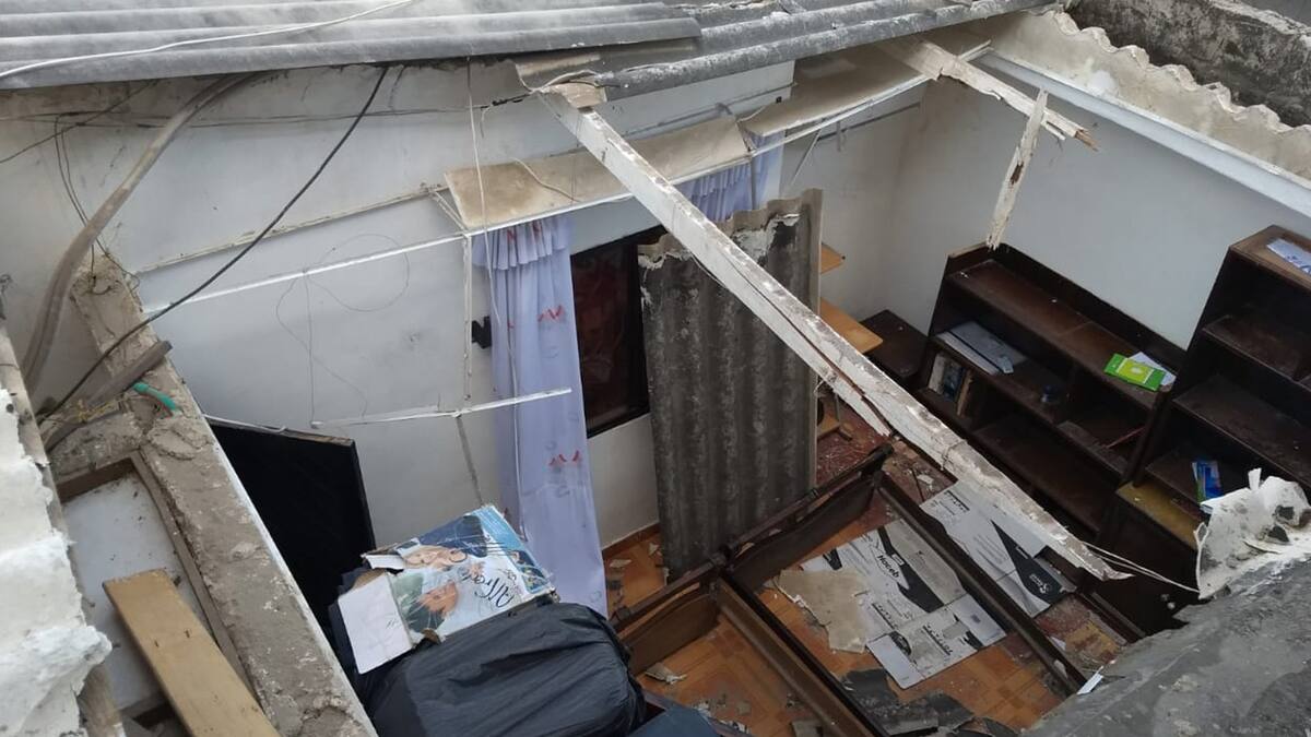 En la sala de la casa están amontonados los desechos de lo que solía ser el techo y cielo raso del último cuarto y la cocina de la vivienda donde reside Alfredo Cabrales, en el barrio los Cusules, en Soledad.
