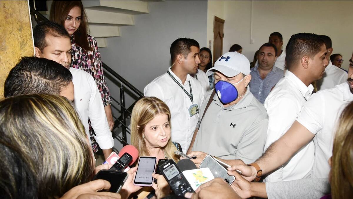 La gobernadora del Atlántico, Elsa Noguera y la secretaria de salud del departamento, Alma Solano, revisan las medidas adoptadas en el departamento ante la declaratoria de pandemia del coronavirus (Covid-19) por parte de la Organización Mundial de la Salud, OMS.