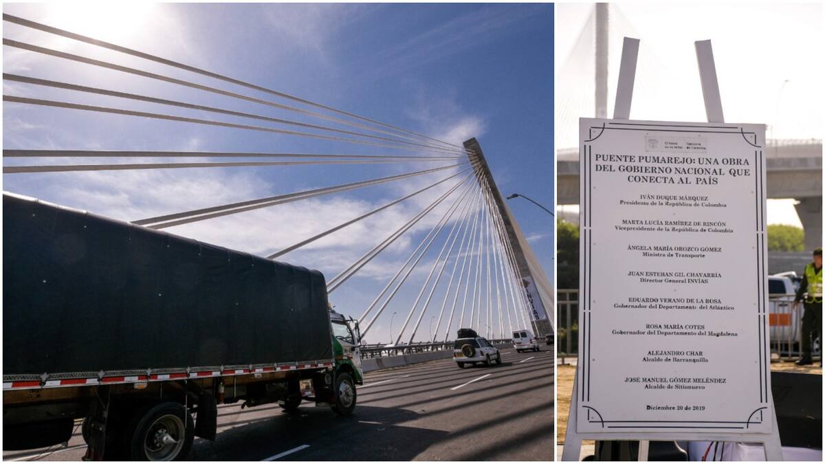 En dicha placa inaugural aparecen los nombres del presidente Iván Duque Márquez, la vicepresidenta de la república, Marta Lucía Ramírez; la ministra de Transporte, Ángela María Orozco; el director general de Invías, Juan Esteban Gil; el gobernador del Atlántico en ese año, Eduardo Verano; la gobernadora del Magdalena de ese momento, Rosa María Cotes; el alcalde de Barranquilla de la época, Alejandro Char, y el alcalde de Sitionuevo, José Manuel Gómez.