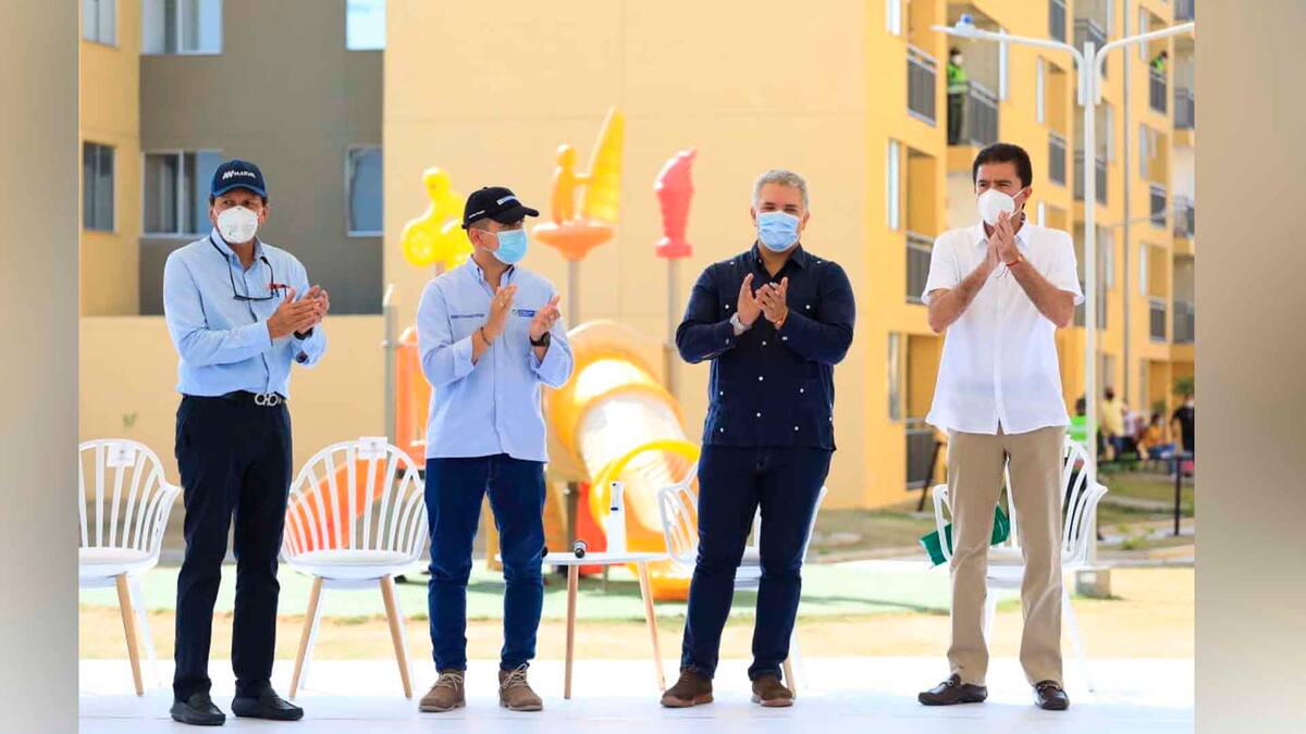 El sector Los Manantiales, en el municipio de Soledad, fue el escenario escogido por el presidente Iván Duque para hacer un corte de cuentas sobre la política de subsidios de vivienda, titulación de predios y mejoramiento de vivienda.