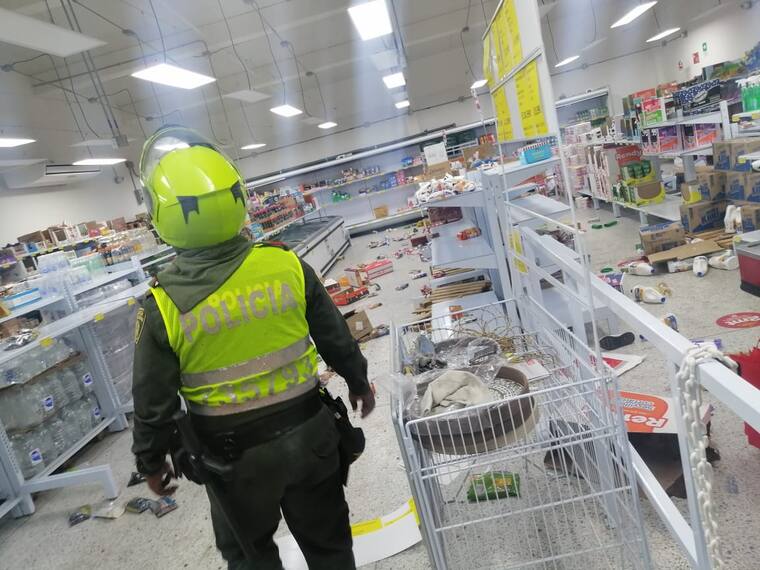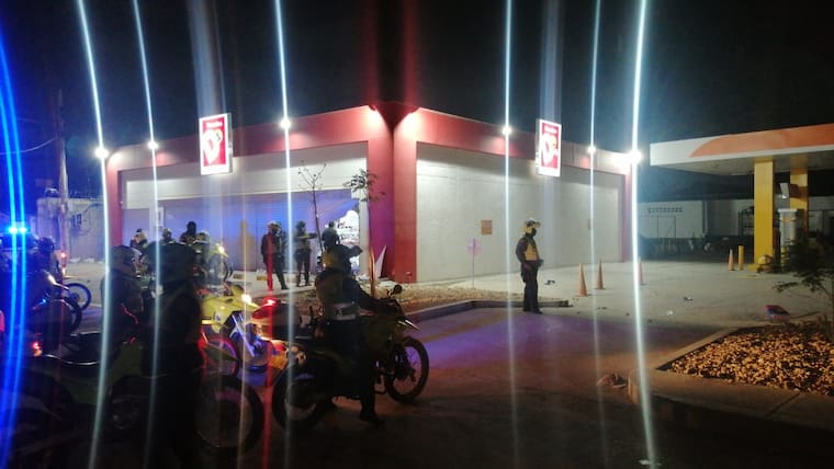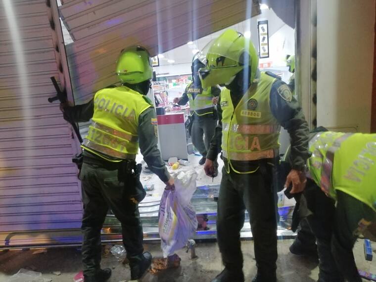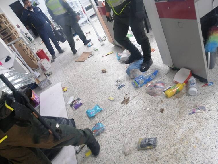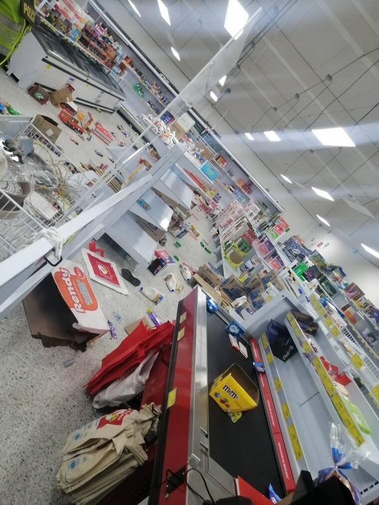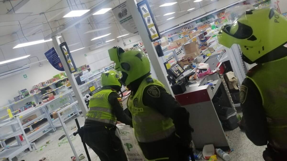 Un grupo de personas que cubrían sus rostros, utilizó varios objetos contundentes y derribó una estera de seguridad del establecimiento comercial.