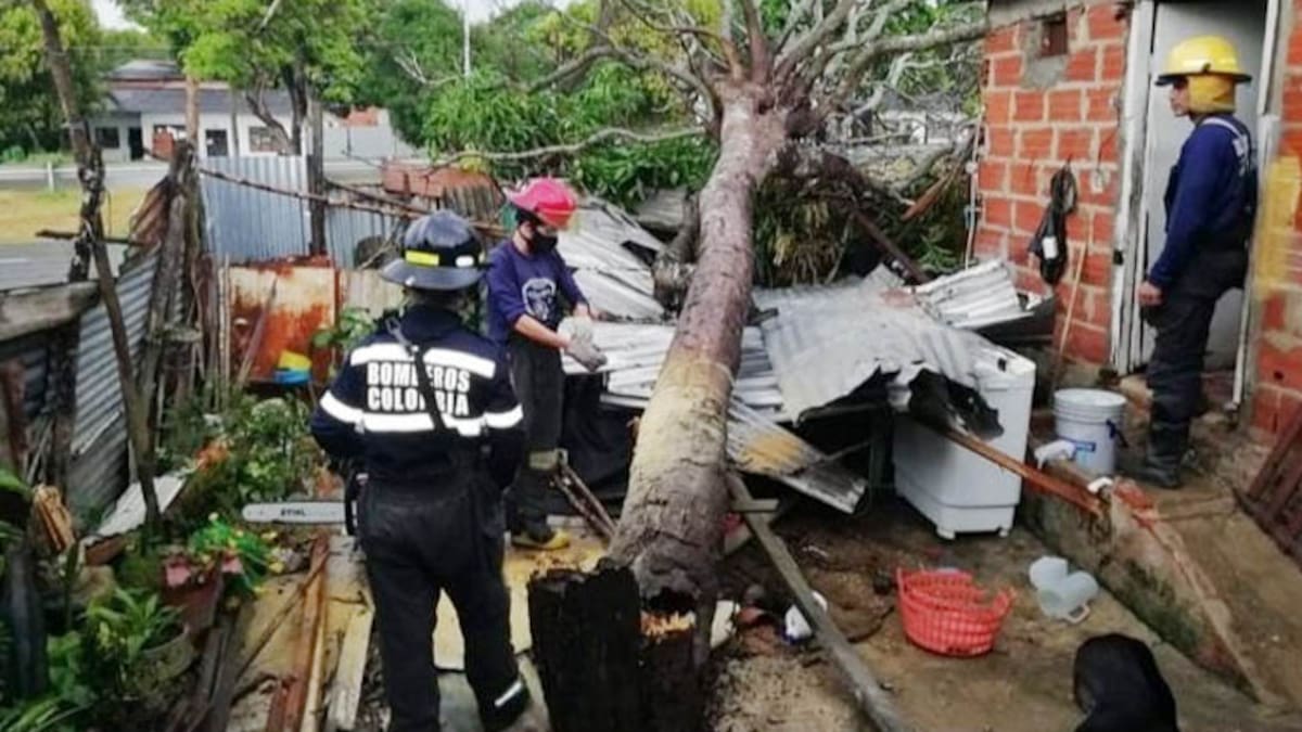 El fenómeno natural, que se presentó en medio de fuertes lluvias, arrancó igualmente varios árboles de raíz. Por fortuna no hubo personas lesionadas.
