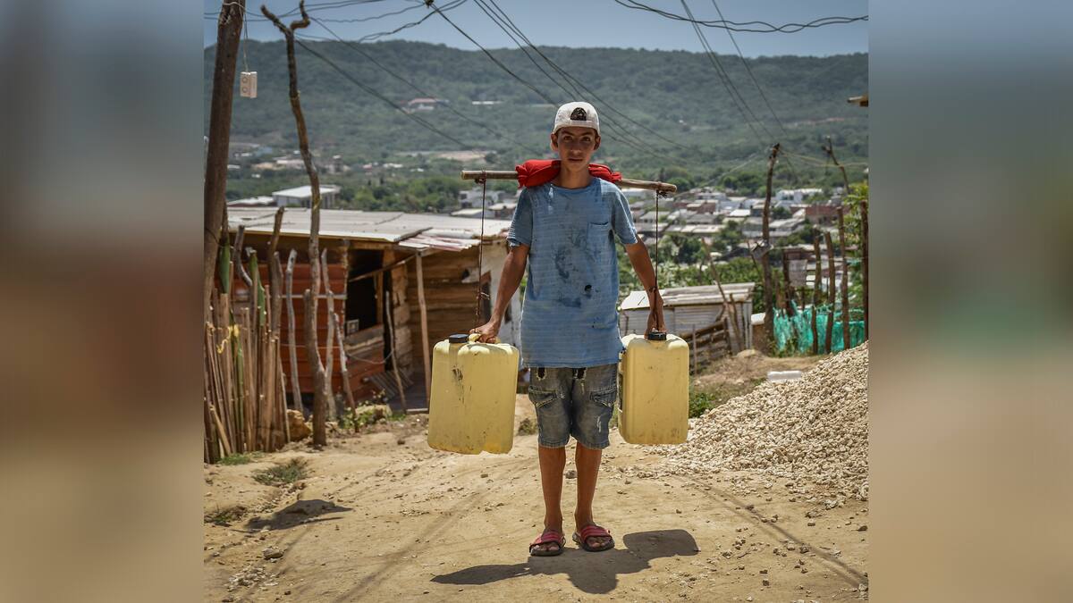 Sus pesares y calambres tienen una razón tan obvia como cruda. Andrés, a falta de una figura masculina de peso en su hogar, decidió desde hace un par de meses asumir una tarea que no debería hacer un niño, pero que la extrema pobreza y el deseo de darle algo de dignidad a su familia, lo obligaron a ejecutar: carretear agua en pimpinas, ancladas a un palo seco, desde el casco urbano de Puerto Colombia hasta uno de los puntos más altos del Cerro Cupino, todo un desgastante y riesgoso ascenso por una elevación geológica que se ha convertido en los últimos años en el nuevo barrio de los más necesitados.