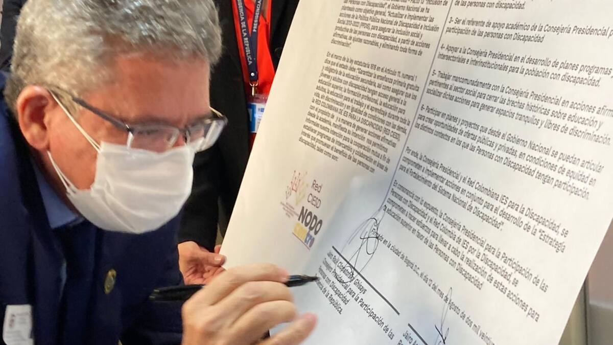 El pacto, que se firmó en un acto realizado en Bogotá, define unas líneas de acompañamiento de las universidades en las diferentes actividades que desarrollen para la comunidad estudiantil, lo mismo que los proyectos y programas que busquen la inclusión educativa, social y laboral de esta población.