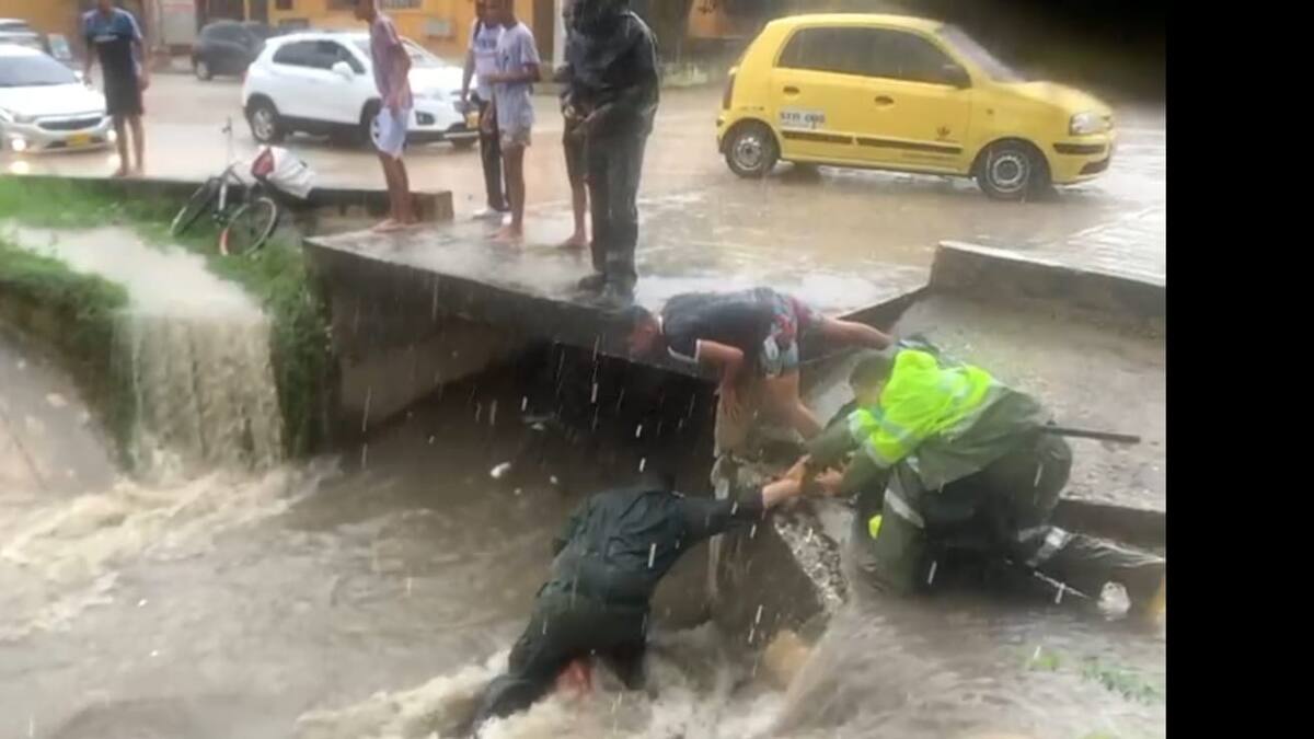 En el barrio Ciudadela 20 de Julio, un grupo de uniformados de la Policía rescató a un menor de 9 años cuando estaba siendo arrastrado por un arroyo.