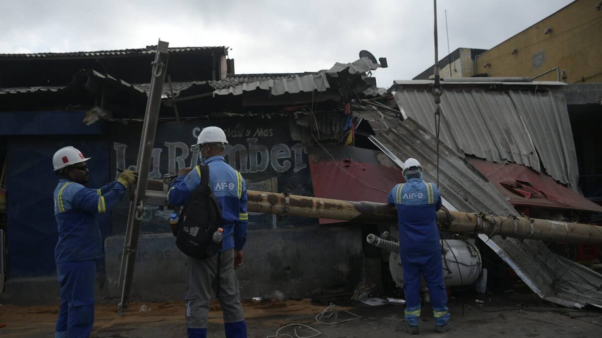 'Hay una sola vía habilitada en la zona. Estaban trabajando en el día y se les soltó el poste. Afortunadamente bajo como en cámara lenta y cayó en unos techos', explicó el testigo.