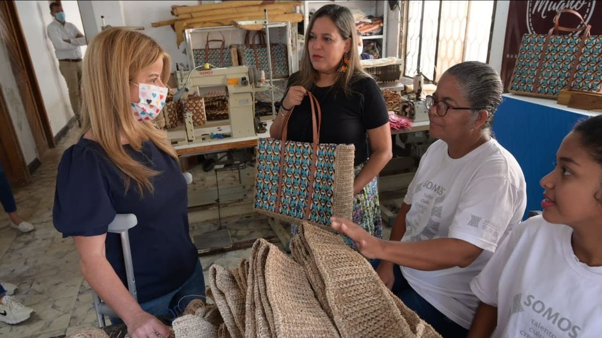 A su turno, la artesana Emelieth Arrieta indicó que este proceso ha sido enriquecedor: 'Nosotras trabajamos en la idea que surgió de mezclar varios conocimientos del departamento del Atlántico y diferentes técnicas como la marroquinería, tejido en zuncho y fique, tres conocimientos, en una sola pieza'.