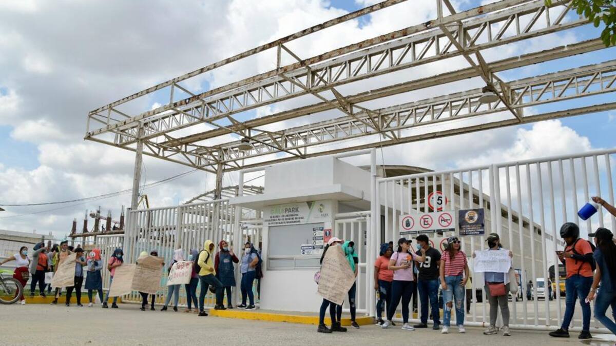 Un grupo de trabajadores de Justo y Bueno bloquearon, en la mañana de este lunes, la entrada principal del Parque Industrial Galapark, ubicado en el municipio de Galapa.