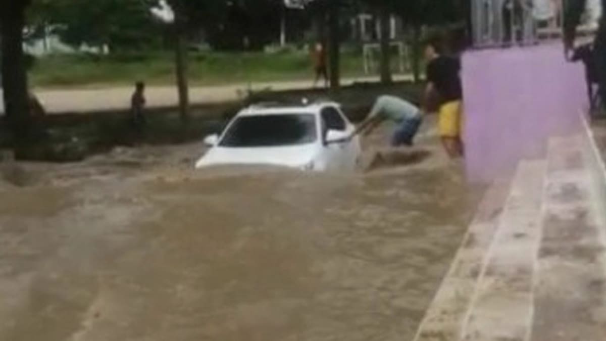 En videos suministrados a este medio se aprecia cómo el vehículo es arrastrado por una fuerte corriente de agua provocada por las lluvias.