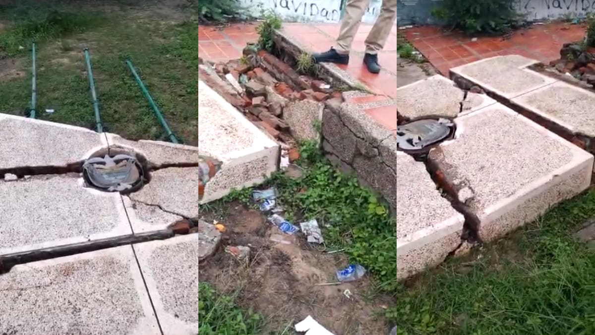 'Varios compañeros estábamos haciendo educación física, hacía mucho sol y nos sentamos aquí para que nos diera sombra, el compañero solo colocó la mano y de inmediato se vino la columna abajo', relató uno de los alumnos.