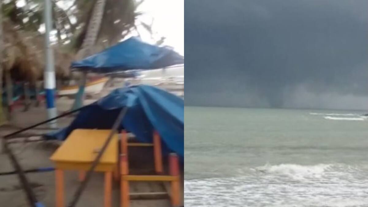 Según reportó Alex Palacios, trabajador de la caseta ‘La frontera’, una tromba marina que inicialmente estaba dentro del mar, se acercó durante varios minutos a la orilla y destrozó algunas casetas.