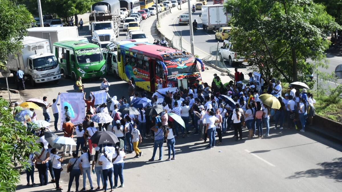 En la mañana de este lunes, la comunidad educativa del Itida realiza una protesta a la altura de la calle 30 con avenida Circunavalar, en una de las entradas al municipio de Soledad.
