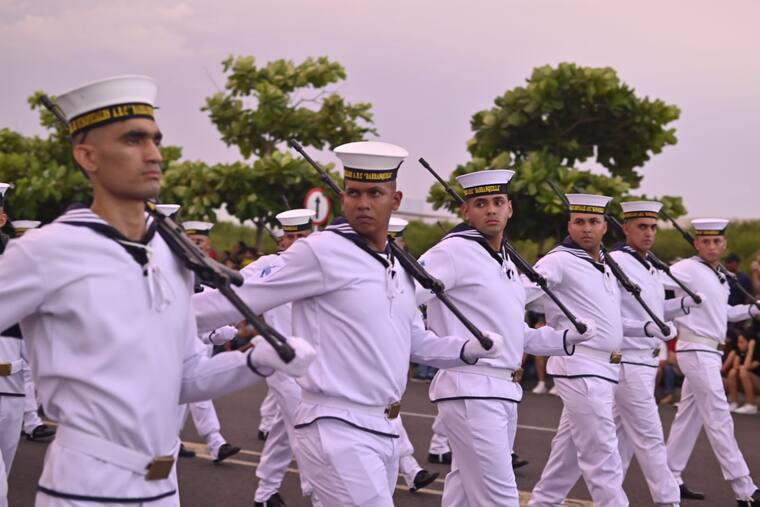 Cientos de personas asistieron al Gran desfile militar en el Malecón del Río este miércoles.
