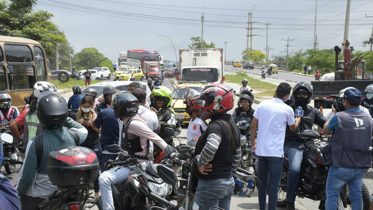 El bloqueo cuenta con el acompañamiento de autoridades y se realiza de manera pacífica en medio de la lluvia que cae a esta hora en este punto.