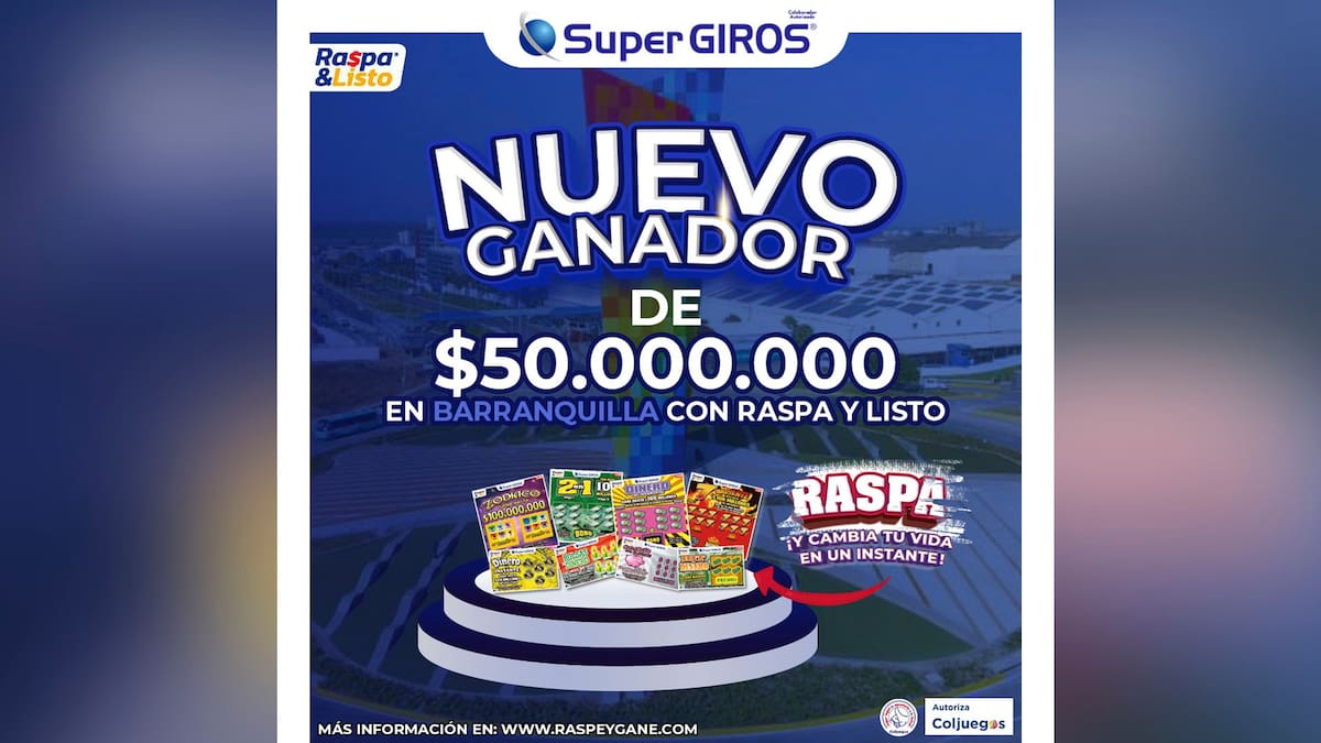 La suerte sigue acompañando a los barranquilleros. El pasado martes 6 de septiembre un afortunado apostador ganó $50 millones con el juego Raspa y listo que comercializa Supergiros.