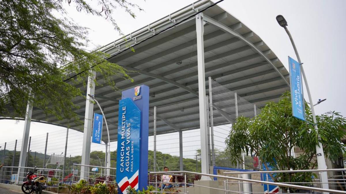 La gobernadora Elsa Noguera dijo que en la cancha podrán jugar microfútbol, voleibol y baloncesto. Reveló que el entorno a la cancha fue recuperado con alumbrado público, senderos peatonales, zona de juegos infantiles, gimnasio biosaludable y zona de esparcimiento.